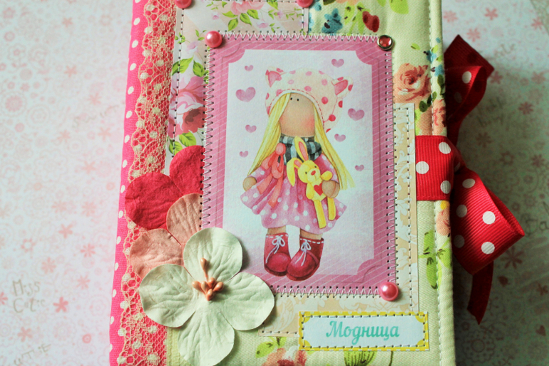 Блокнот сделан полностью с нуля, имеет 160 разлинованных страниц плотностью 120 г/м2, он может служить дневничком для юной особы,а в коробочке можно хранить всякие записочки, открыточки - в общем всякие прелести и нужности.