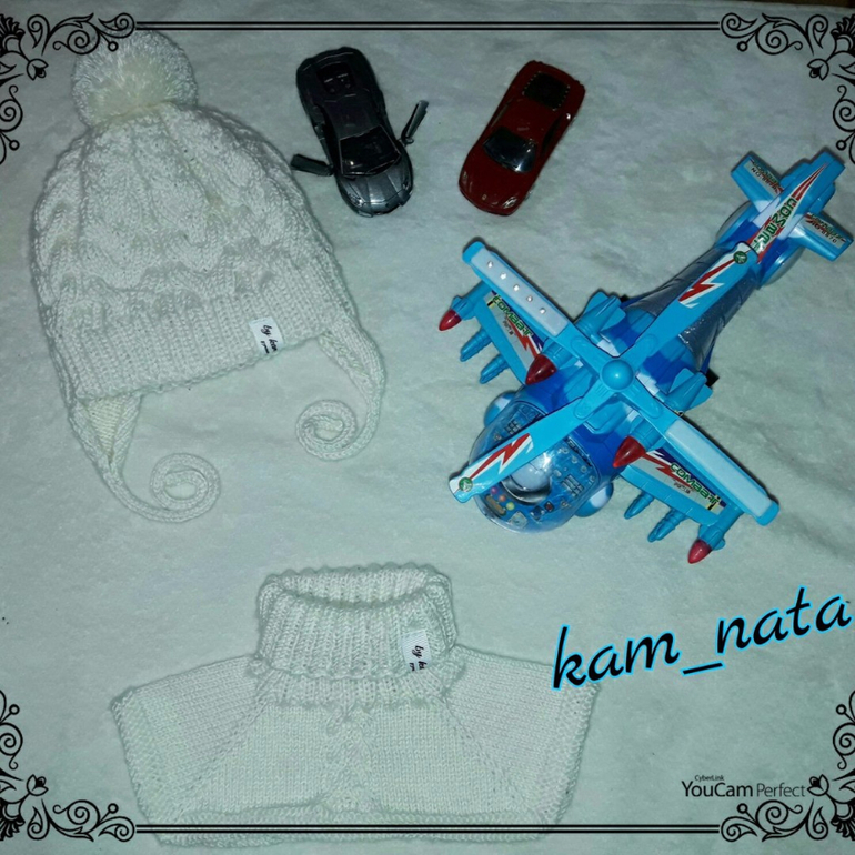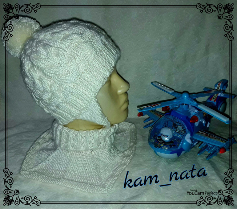 Вязание спицамиЗимний комплект для мальчика связан из полушерстяной пряжи. Двойная шапочка и Манишка будут греть мальчика в зимние холода!!!
