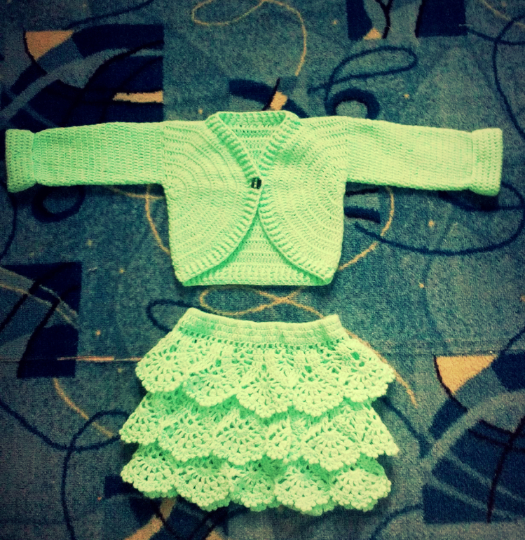 а это кофточка но так как там- одним элементом у меня "ума не хватило" связать и я делала отдельно 2 полукруга и прямоугольник(спинку) а потом всё соединила