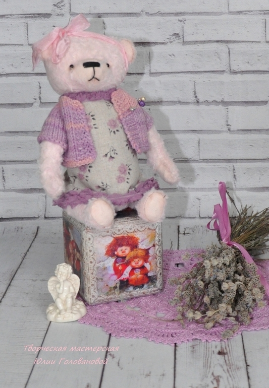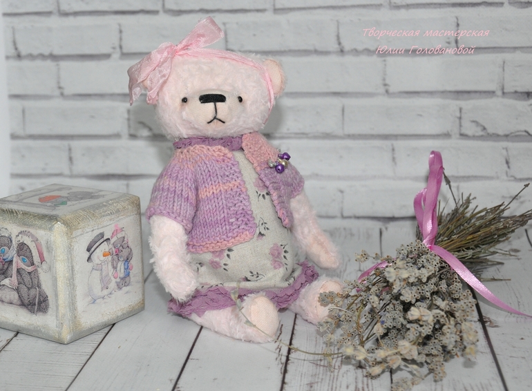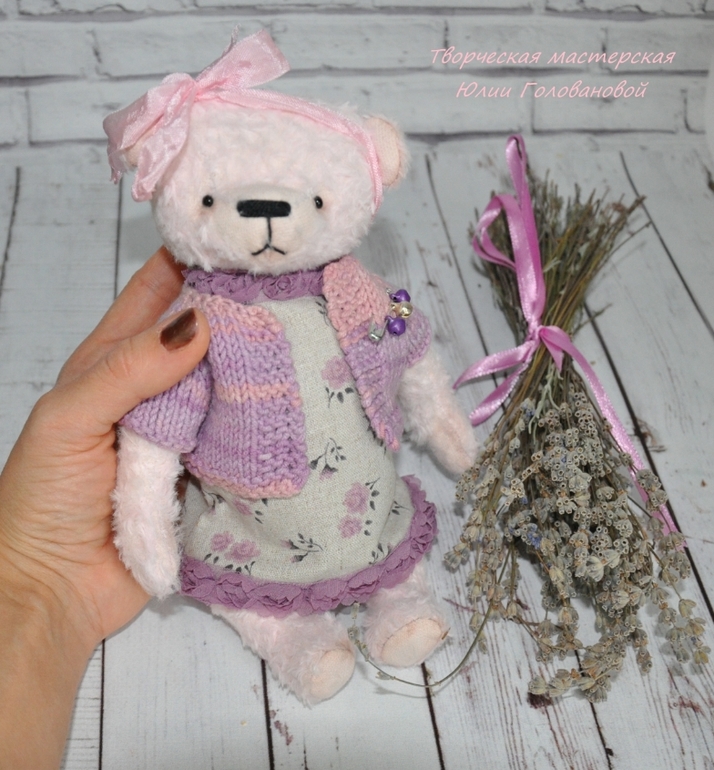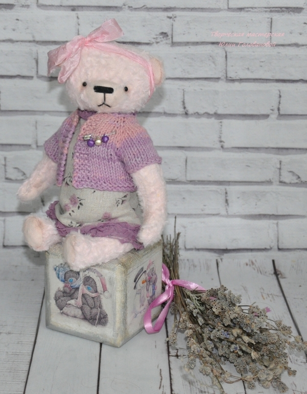 Тедди: мишки и их друзья.Всем привет! Я сегодня к вам на огонек со своей новой мишкой. Зефирка. Мишка тедди сшита из немецкой вискозы ручного окраса нежно розового цвета. В пузе опилки и гранулят. Шплинтовые соединения, руки, ноги, голова двигаются. Одета в льняное платье с кружевной отделкой, вязаный свитерок. Вся одежда съемная. На голове шебби ленточка. Ростик 21,5 см. Сшита полностью вручную с любовью и теплом.