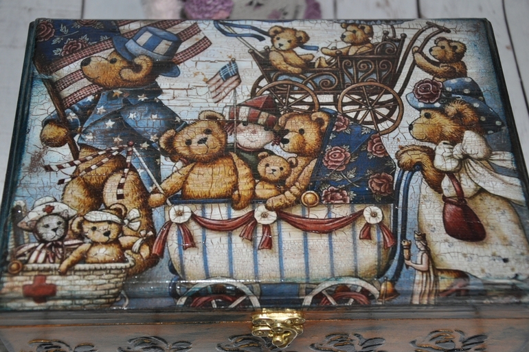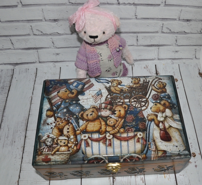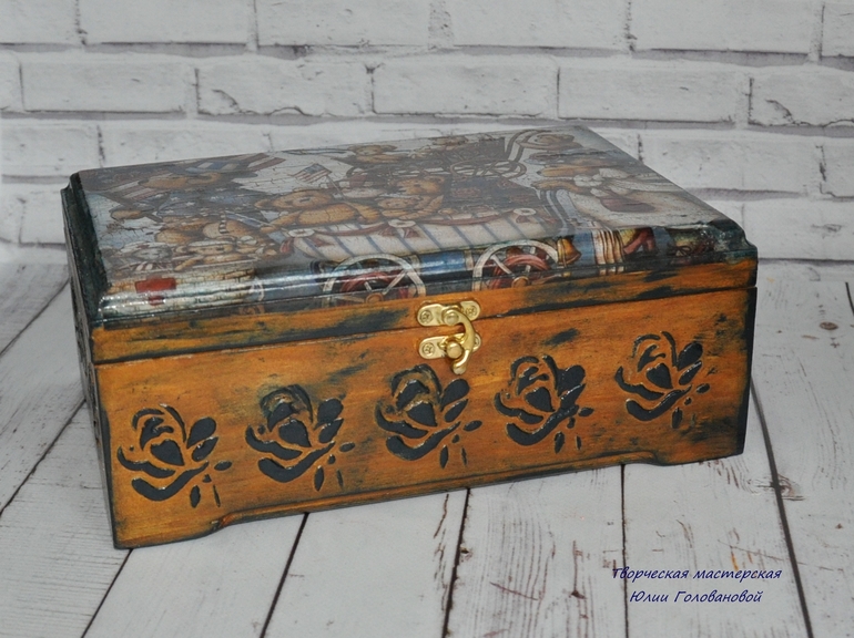 Замечательная шкатулочка))) смотрю на неё, а она такая-такая, будто из недавнего прошлого, как-будто уже пожившая и хранящая в себе истории и тайны твоего детства)))