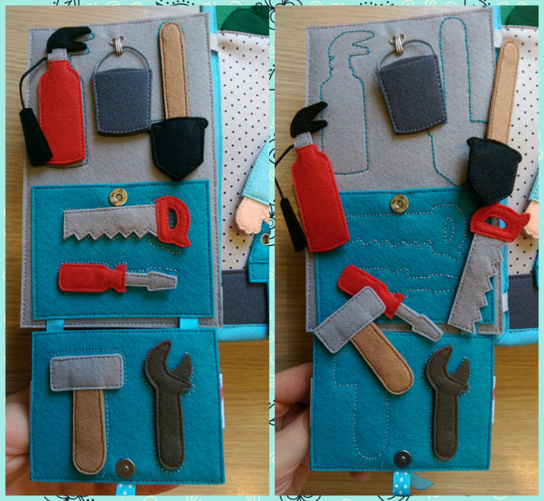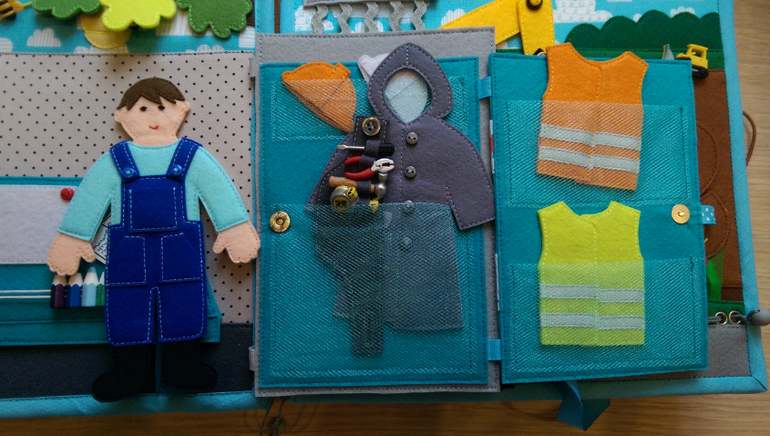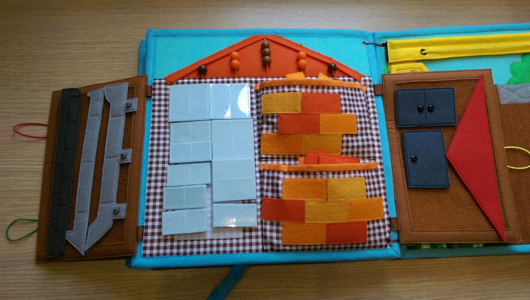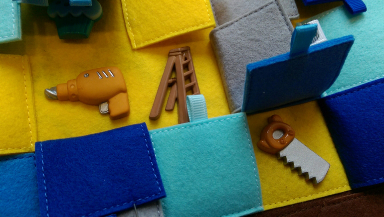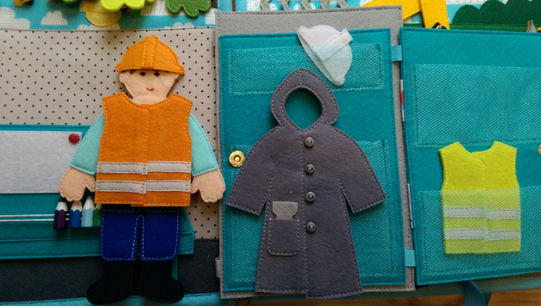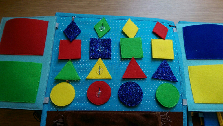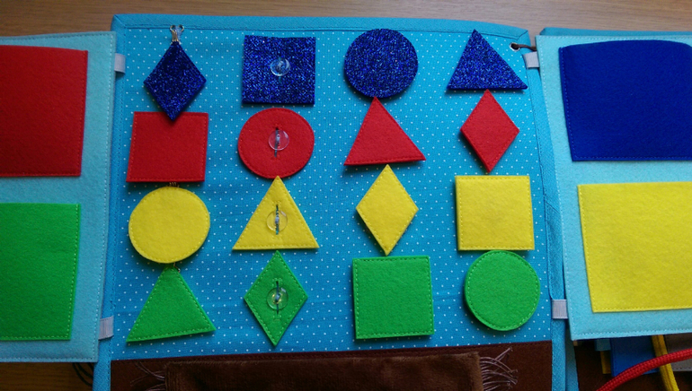 Заполняем логическую таблицу. Либо по цвету, либо по форме, либо в кармашки согласно цвету, на крючки, пуговицы, липучку и магнитные кнопки.