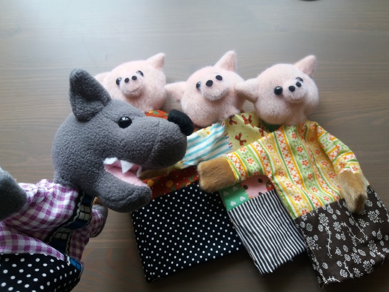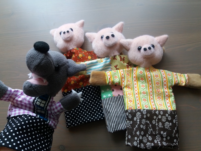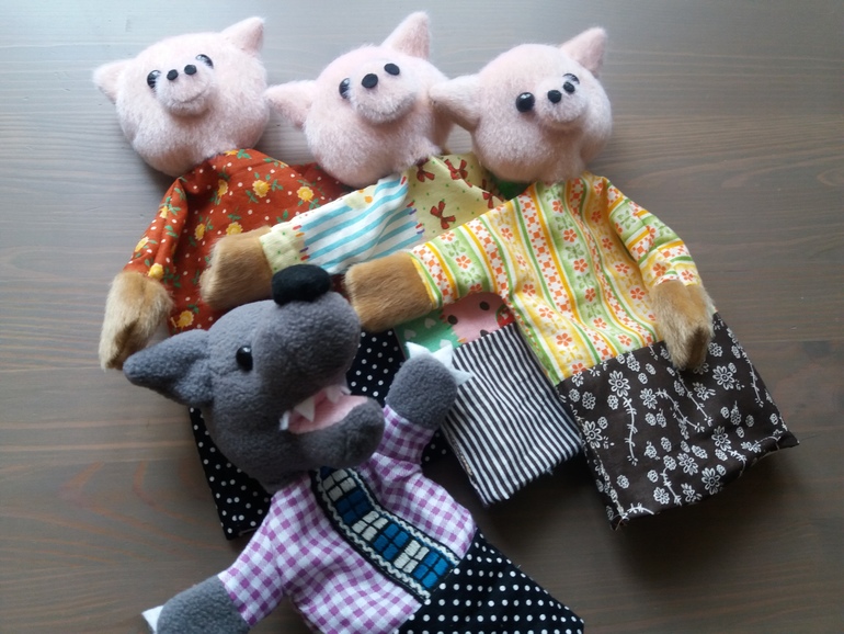 Игрушечный мир - животныеПопросили в сад сшить перчаточные куклы для сказки Три поросёнка.Дома нашла как-раз подходящий материал и вот они готовы)).
