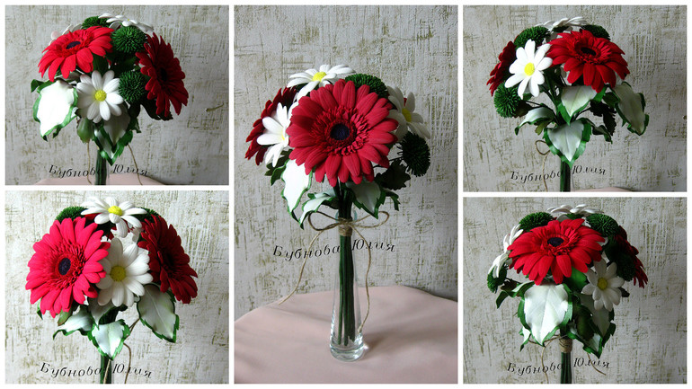 А вот приличное фото букета с моими горячо любимыми герберами сделить не удалось. Наверное руки не из того места у меня. Поэтому стащила фото из дневника мастера