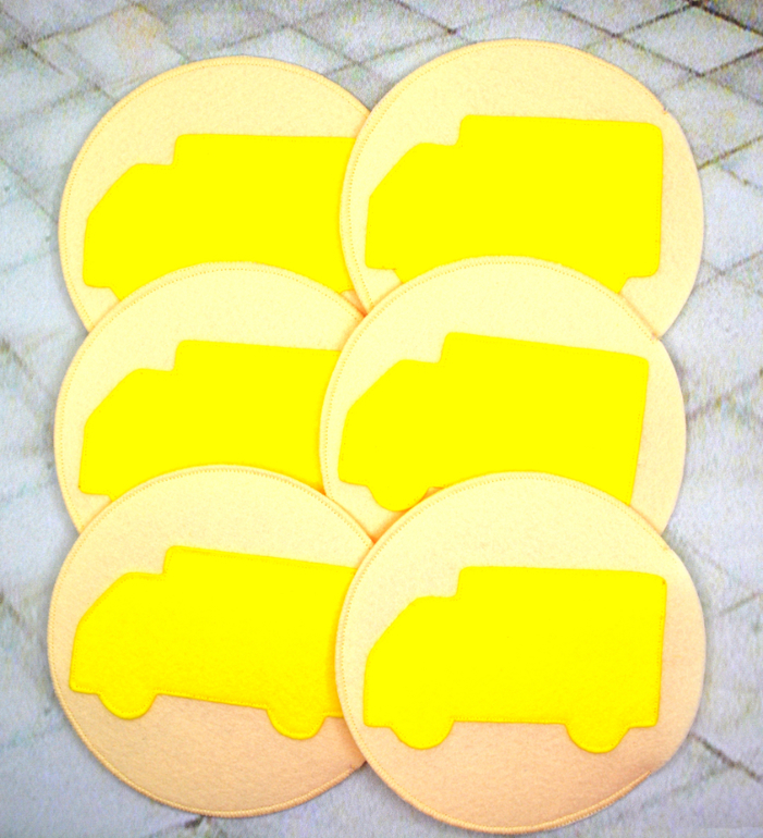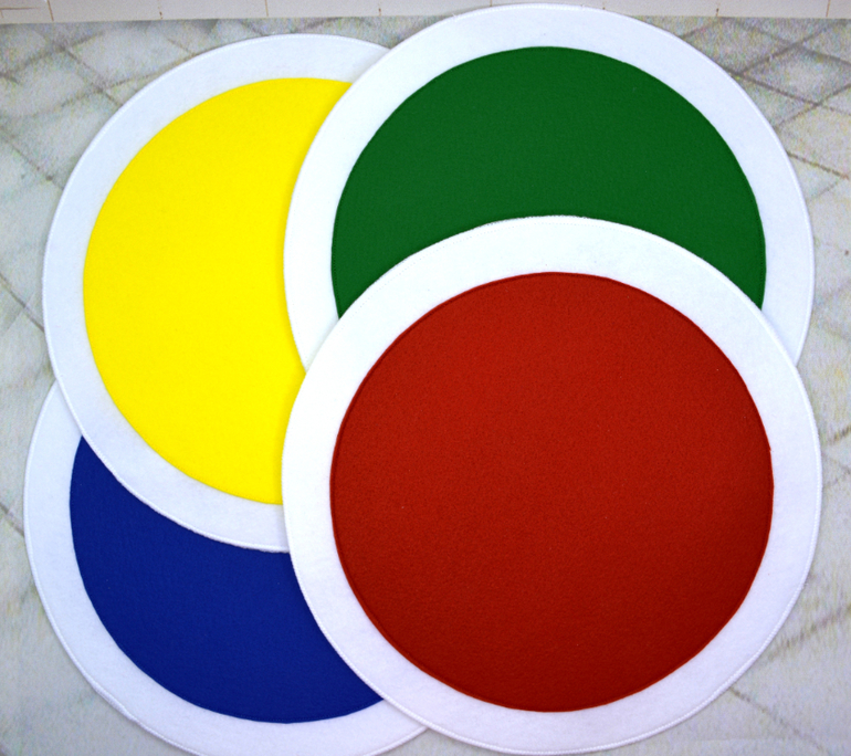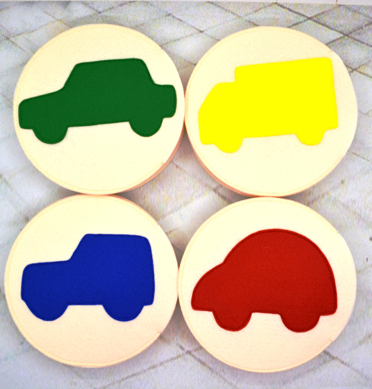 Вся группа (у нас в саду 24 ребенка) одевают на руку кружочек с машинкой. Каждый кружочек сострочен из двух кругов, также есть небольшое отверстие, благодаря чему такую "перчатку" можно надеть на руку. По сигналу воспитателя дети, на чьих руках перчатки соответствующего цвета, выполняют задания. Игра учит ориентироваться в цветах, внимательности и логическому мышлению.Воспитатель подает сигнал к действию большим кругом соответствующего цвета. Большой круг двухсторонний - на одной стороне большой круг (например, красный), на другой стороне такого же цвета большая машинка.