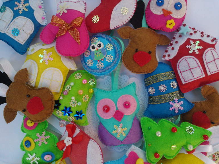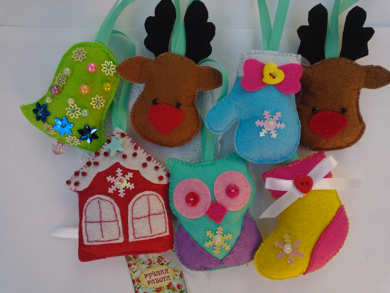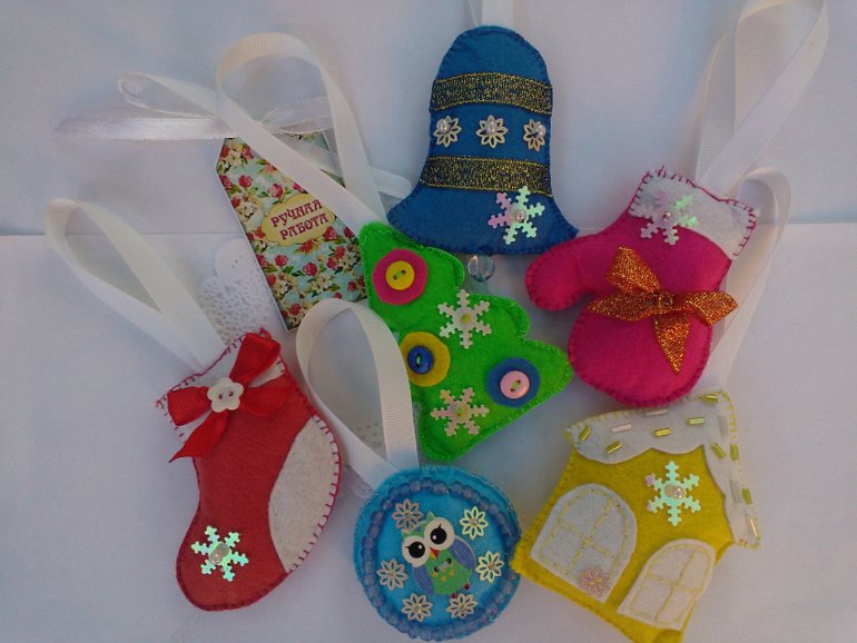 ФетрМои первые работы для елочки.Очень понравилось украшать игрушки.Под катом еще 3 фото.