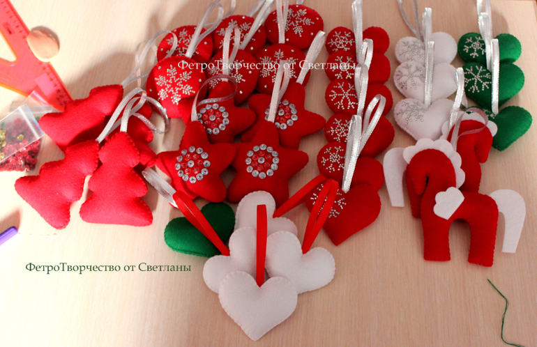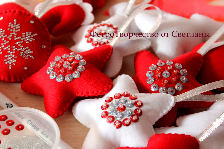 Сегодня я покажу вам только фото новых елочных игрушек и немного процесса их пошива .
