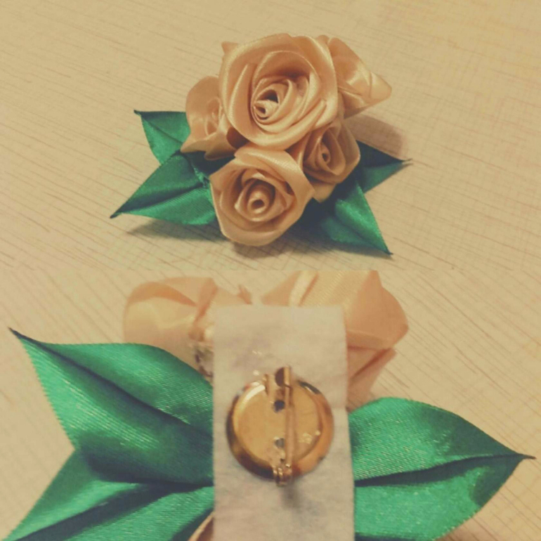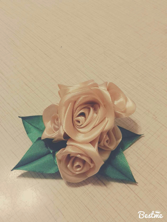 Вчера уже попробовала сделать среднее из 2,5 см ленты,сделала 6 маленьких розочек бежевого цвета,можно приделать как брошь,или на шапочку.