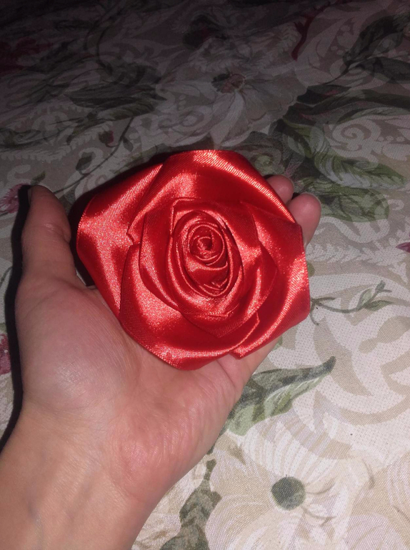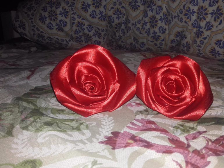Цветы из ткани и форма. Канзаши. Украшения для волос.Решила попробовать сделать розочку из атласной ленты,с начало сделала две больших красных,теперь не знаю куда их приспособить)