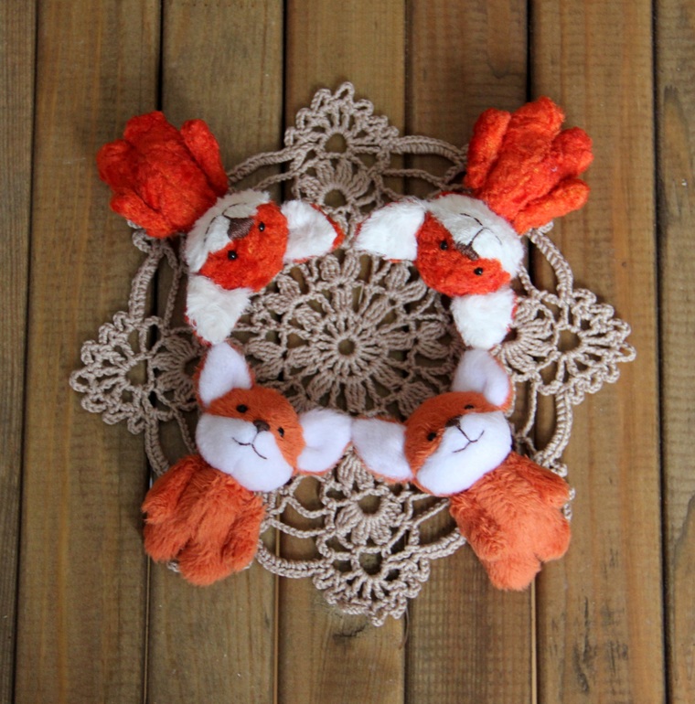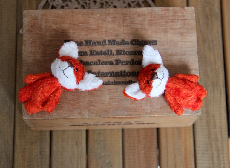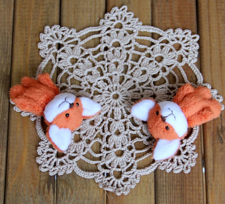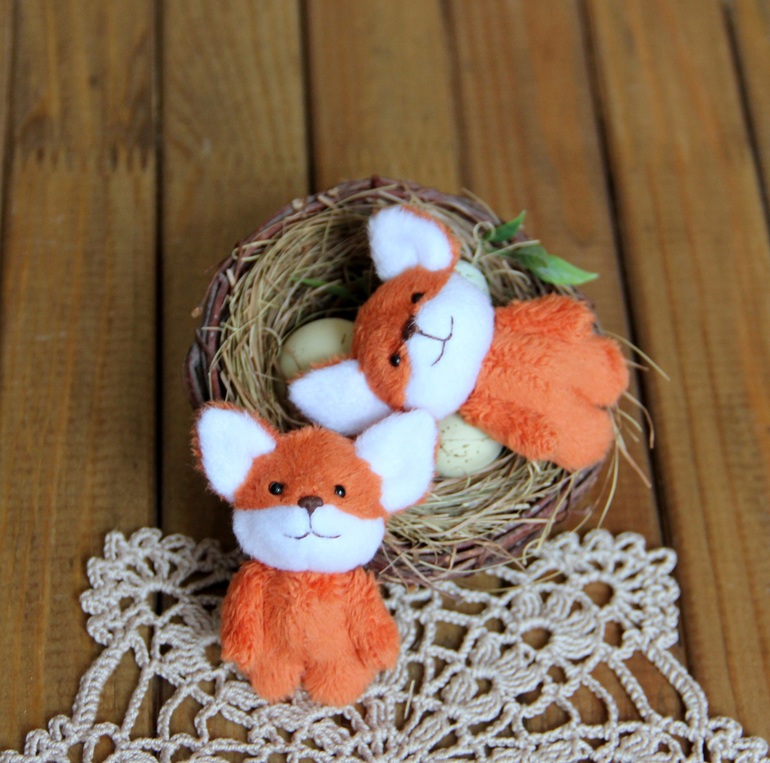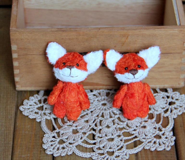 Игрушечный мир - животныеПошились у меня 4 лисы-броши, 6 см. без учета ушек. Из вискозы и из плюша.