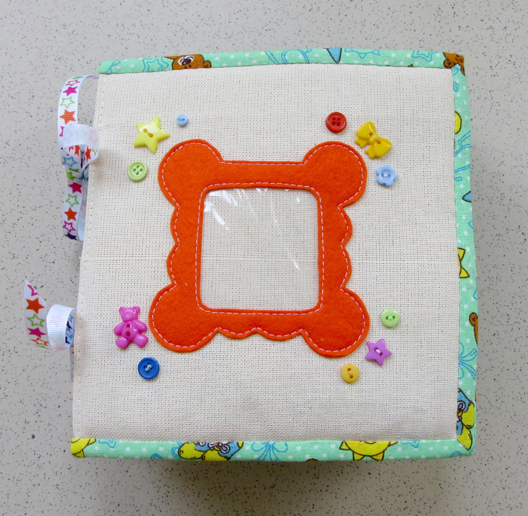 Страничка с пуговичным лабиринтом для пальчиков и страничка с корабликом. Рыбка надевается на пальчик.