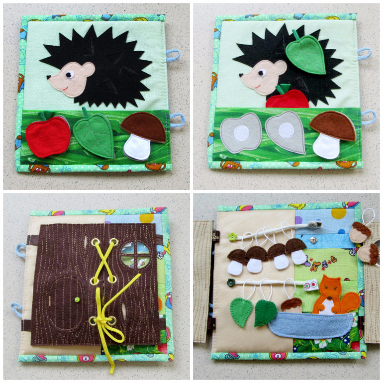 Книжечка 20 х 20 см, в ней 5 страничек, 4 тематических разворота.