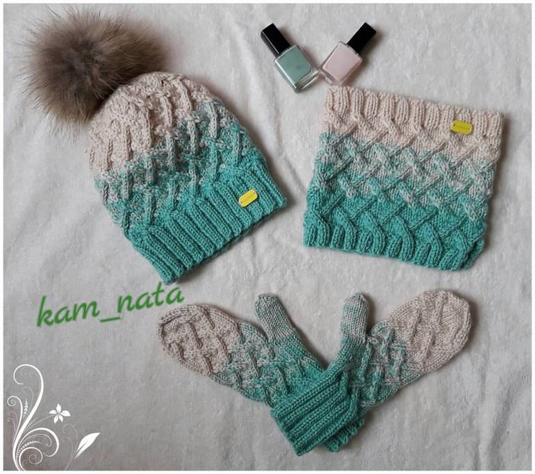 Вязание спицамиКомплект для девушки из полушерстяной пряжи в технике градиент. Многими любимый узор.