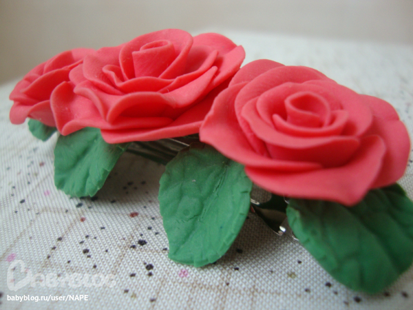 Заколочка-автомат с розовыми розочками:)))