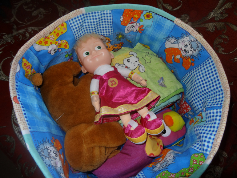 но малыш не давал присесть за машинку. Все время на руках. Сейчас вот дал минутку и не теряя не секунды сотворили вот такою коробочку для игрушек: