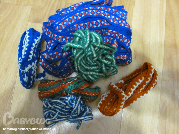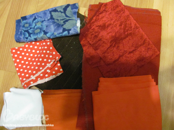 В ней были лоскутки разной ткани, часть которой подойдет для моих новых куколок, а часть пойдет на цветочки. Еще много ленточек, кружев, паеток и пластика.
