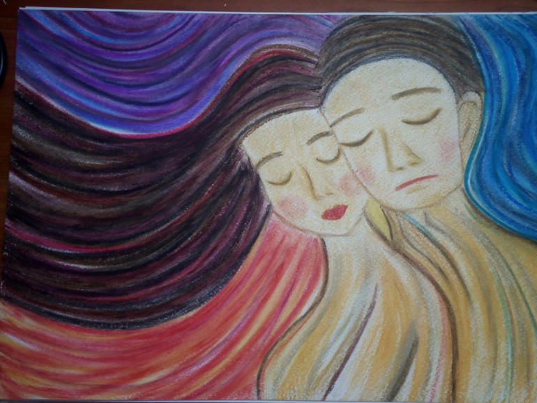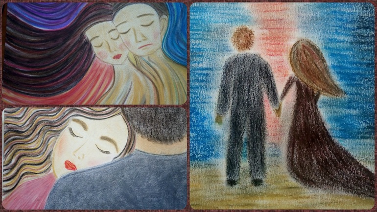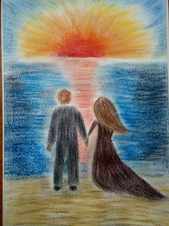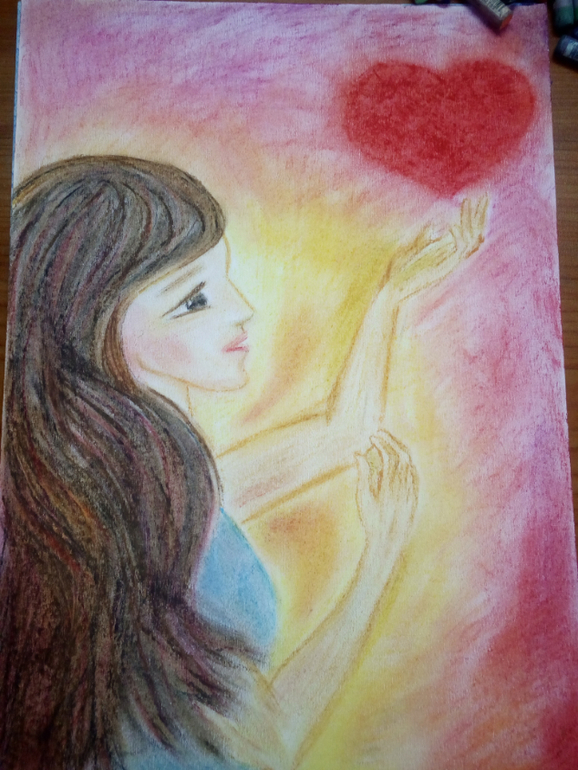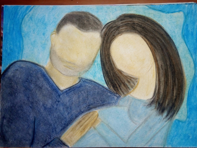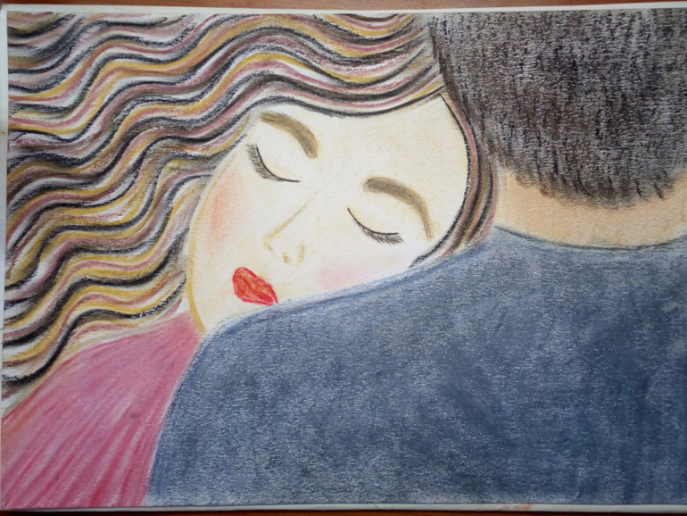 следующий рисунок не мой а старшей дочки, получился он по мотивам предыдущего моего рисунка, но на мой взгляд получился еще лучше, самодостаточный и такой детский и нежный:) просто дочка склонила голову к сильному папиному плечу:))