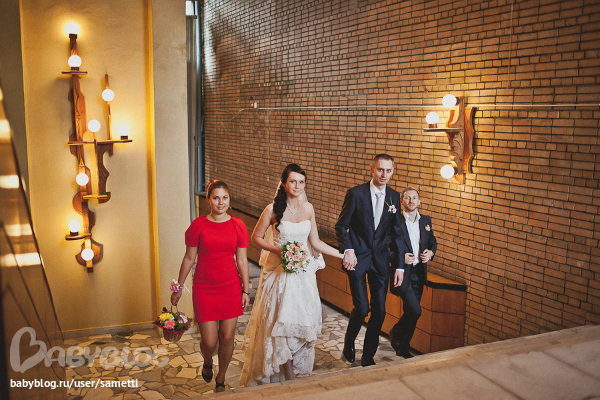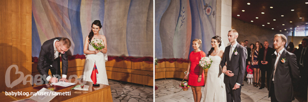 Бутоньерку свидетеля особенно хорошо видно:))))))) И браслет;) А уж цветы в прическе...)