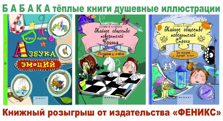 Друзья, мы объявляем новый книжный розыгрыш от издательства «Феникс-Премьер». На этот раз разыгрываются три детские книги: «Азбука эмоций» Наталии Кедровой, «Тайное общество победителей страха» и «Тайное общество покорителей вранья» Елизаветы Филоненко.