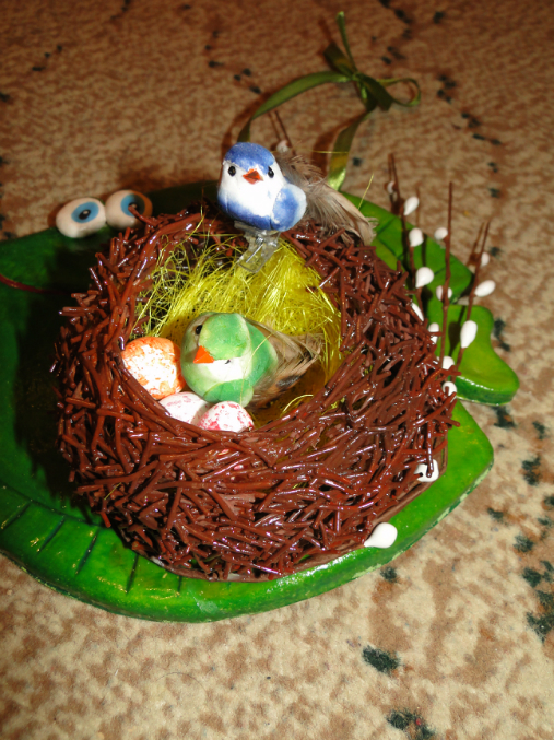 гнездо собирала из вермишели. Работа трудоемкая, но интересная!