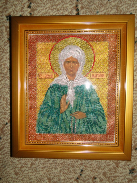 Анина мама-рукодельница с большой буквы! Это она вышила для нас бисером такую икону! Спасибо Вам большое! Всего Вам самого хорошего! Здоровья, счастья, долгих лет жизни!