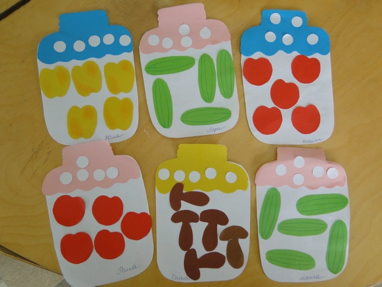 Поделки с детками.Решили мы с ребятками помочь нашим мамам и бабушкам сделать заготовки на зиму. Насолили огурцы, помидоры, грибы и еще приготовили яблочные компоты. Деткам понравилось занятие