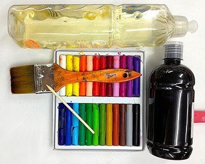 1. Раскрасьте бумагу цветными восковыми мелками в свободном стиле. Не жалейте мелки, они должны покрыть бумагу толстым слоем. Примечание: с этой частью работы сможет справиться даже маленький ребенок.