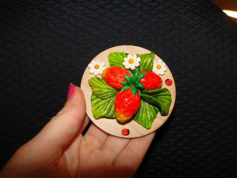 Солёное тесто (ТОЛЬКО ГОТОВЫЕ РАБОТЫ)Получила срочный заказ от администрации города-сделать 50 магнитов к Дню города. У нас этот день объединен общим названием "Земляничный джем", поэтому все магнитики с земляничкой.