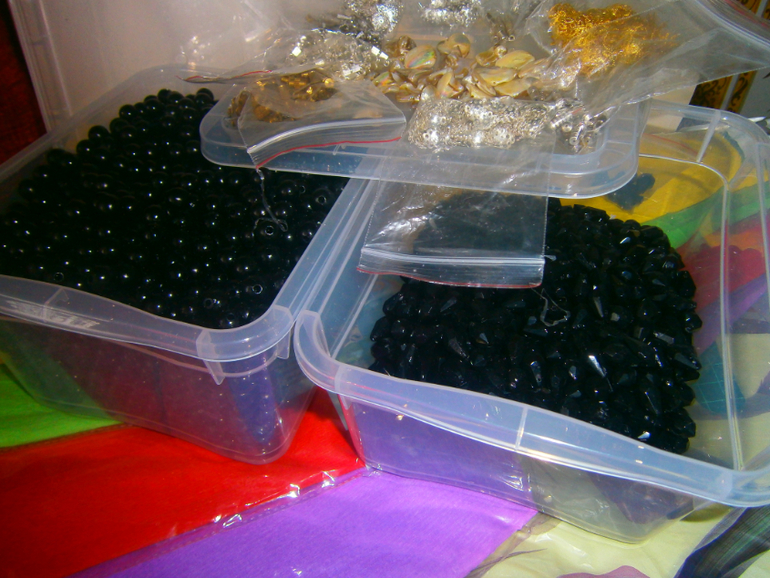 Два контейнера бусин,фурнитура,а еще гофрированная бумага. Спасибо огромное Ольге за Такого слона.