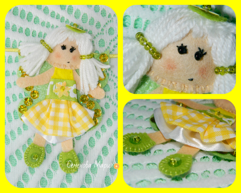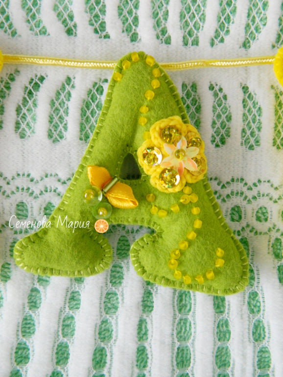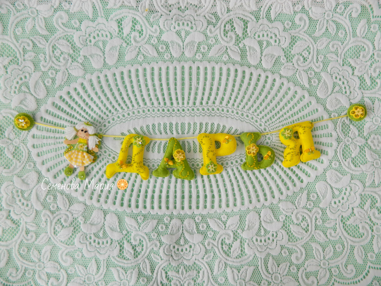 ФетрВыбор темы и цвета было моим решением. Мама Дарьи доверилась мне, а я в свою очередь очень постаралась. Дашенька светленькая улыбчивая девочка и для нее я сшила именно такую солнечную фетровую именную растяжку.