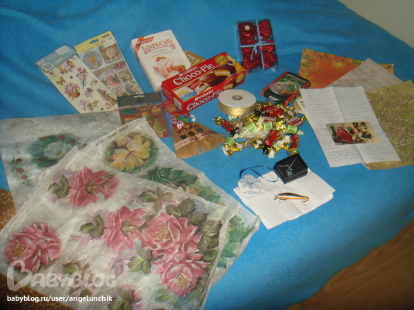 Сладенькое)))))))))))))) Честно скажу, что почти ничего не осталось))))))))))0 Сладкоежки в моей семье все))))))) Вот такую еще безумно красивую снежинку прислала мне Мариночка)