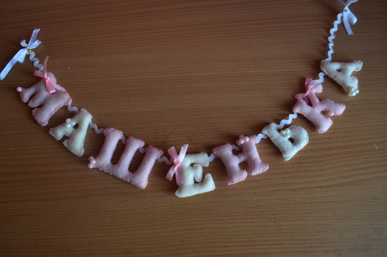 ФетрВлюбилась я в этот материал, глядя, какую красоту из него можно сделать! Вот и решилась тоже попробовать сшить для дочки растяжку с именем! Фетр заказывала у Светланы . Очень все понравилось! Вот что получилось у меня в первый раз