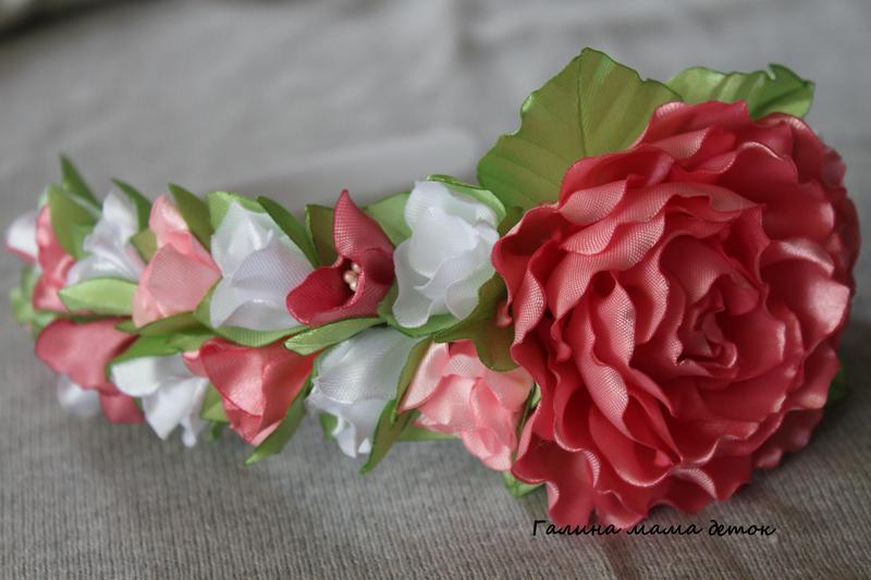 Цветы из ткани и форма. Канзаши. Украшения для волос.