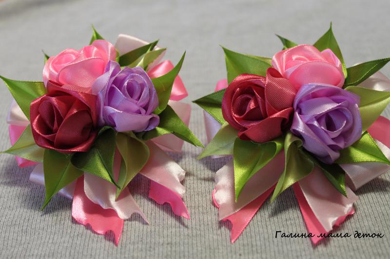 маленькие бантики на зажимчиках. в дальнейшем можно использовать как заколочки.