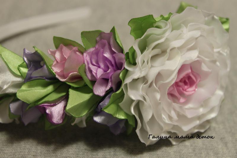 10. ну и самая нежная работа...ободочек с сиреневыми розочками. 4 оттенка сирени. фото немного ярче, чем в реальности.