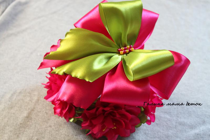1 на первом месте украшение на пучок цвета фуксии, бант съемный. фото затемнены, чтоб хоть как-то можно было сфотографировать)))