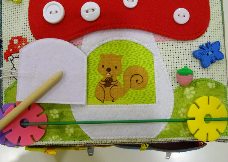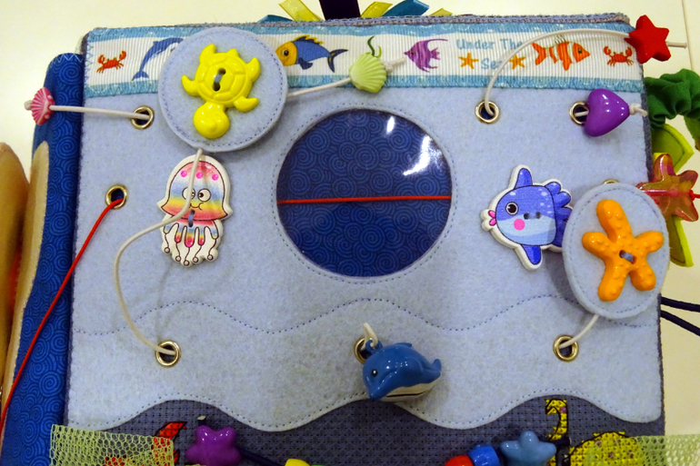 Спасибо) Вообще, думаю, будет интересен после года. Но тут, конечно, и от ребёнка ещё зависит. Я своему сыну подобный шила (правда, попроще чуток), когда ему месяцев 7 было. И он им очень долго играл. Конечно, если видно, что основной целью малыша является оторвать или откусить что-то от игрухи, то значит, ещё рановато, и лучше отложить её на потом. Мой, просто, особо в рот ничего не тянул, и такой проблемы не было. Но в любом случае, играть с подобной игрухой нужно только под присмотром взрослого.