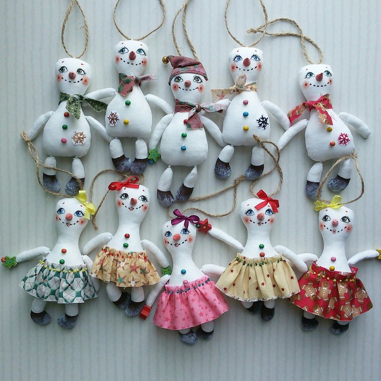 И я начала готовиться к Новогодним ярмаркам))). И вот слепились у меня снеговики и снеговицы. Яркие и нарядные так и просятся на елку! Ростиком около 12 см.