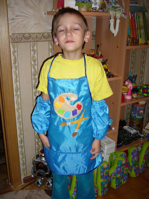 Шитье одежды, выкройки, ремонт одежды, шторы, швейные машины (уже приобретенные)Сшила для сына такой вот фартучек и нарукавники в школу для заняний на ИЗО.Апликация из фетра.СМотрим 4 фото
