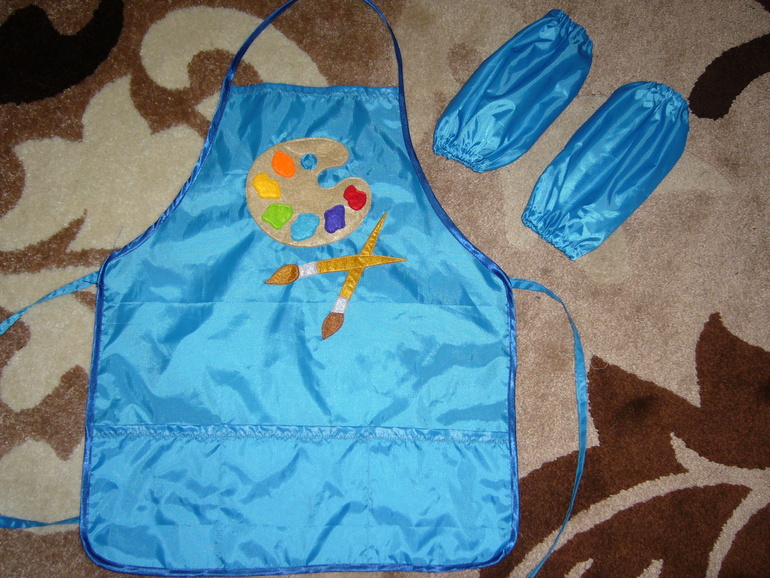 Сшила для сына такой вот фартучек и нарукавники в школу для заняний на ИЗО.Апликация из фетра.СМотрим 4 фото