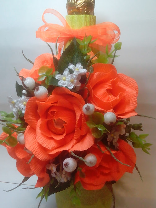 Быстренько собрала себе украшение для шампанского, ко дню рождения.