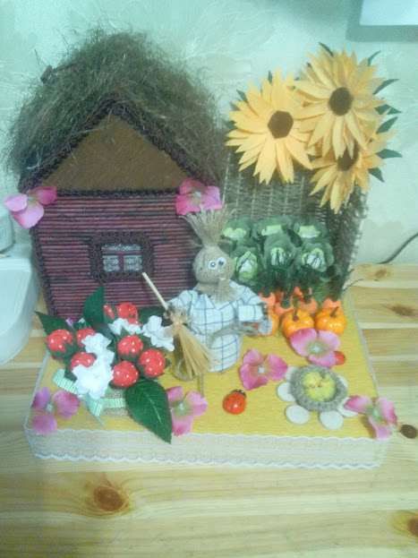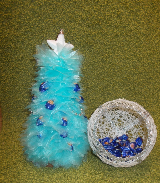 Моя любимая ёлочка из органцы с Миндалём Ивановичем, в компании конфетницы из ниток