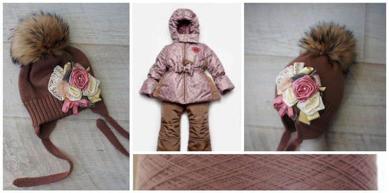 Машинная вязка (РАБОТЫ И СХЕМЫ)Зимняя шапочка цвета какао, украшена розами и бусинами сваровский .