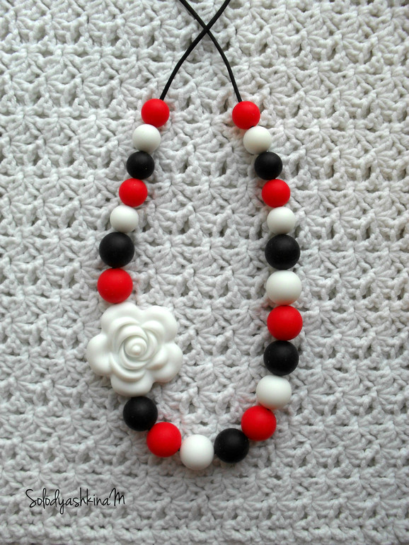 Бижутерия для слингомам. Слингобусы. Грызунки.Когда устают руки от крючка балуюсь силиконом ))) Вот такие получились контрастные слингобусы для мамы мальчика и мамы девочки. Контрастные цвета способствуют развитию зрения. Силикон пищевой и которого делают пустышки и грызунки, отличный массажер для десен. Ну и конечно развитие моторики.