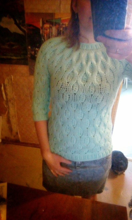 Спасибо! вязала с низу в верх! вот ссылка на онлайн вк http://vk.com/club131049536 там 4 свитера, по каждому открыто обсуждение, в комментариях схема и объяснения)