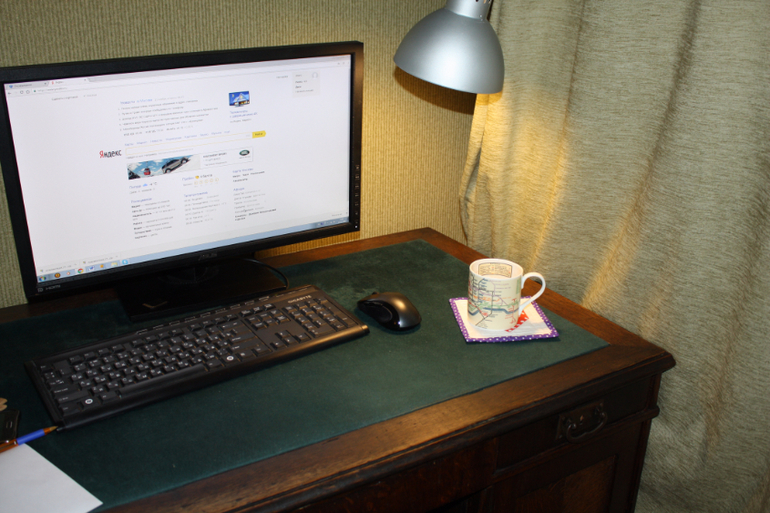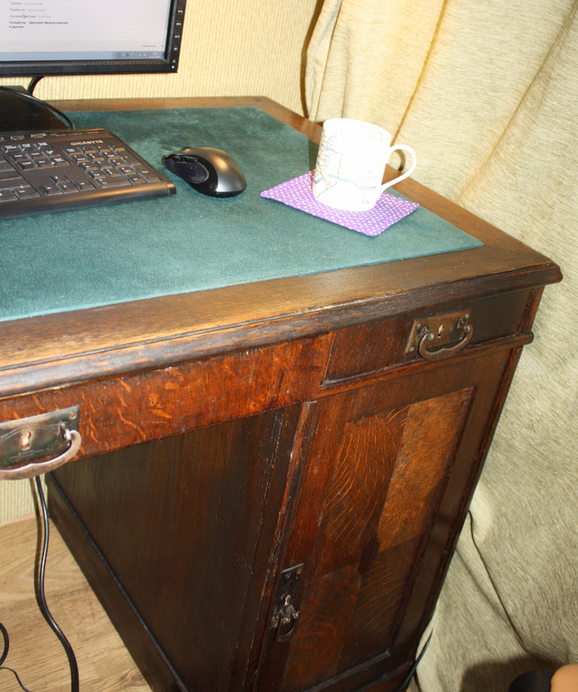 Эту подставочку под кружку прислала МаринаMariKo . Очень классная получилась. Я ее сразу на стол пристроила.. Это наш папа всегда хотел иметь дома письменный стол с историей. И вот на Авито нашел объявление о продаже стола аж 1920 года. Поехал и купил. Дома отреставрировал его малость и стол готов ))) Дедушка, кот его продавал сказал, что он за этим столом писал научную работу, за кот даже получил премию от Сталина. Вот так то ))) Теперь эта подставочка красуется на этом столе