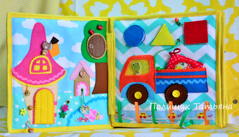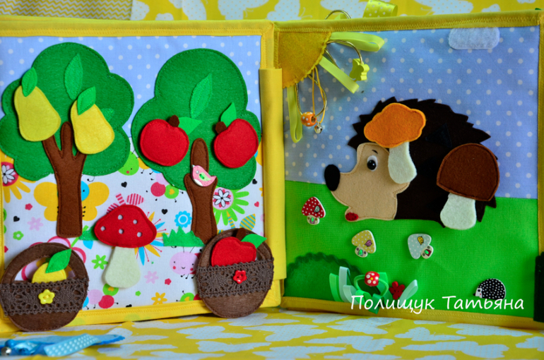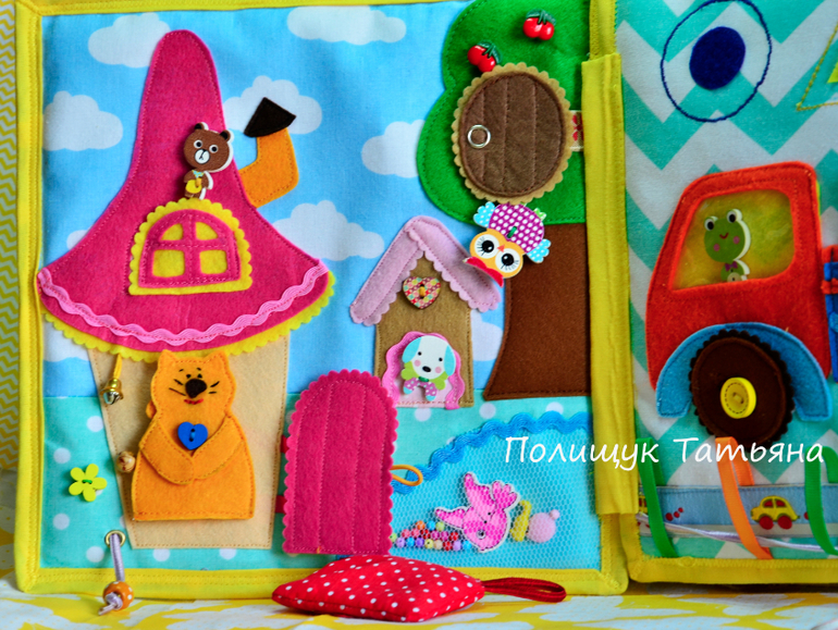 Обложка и жесткий переплет развивающей книжки так же содержат развивающие элементы