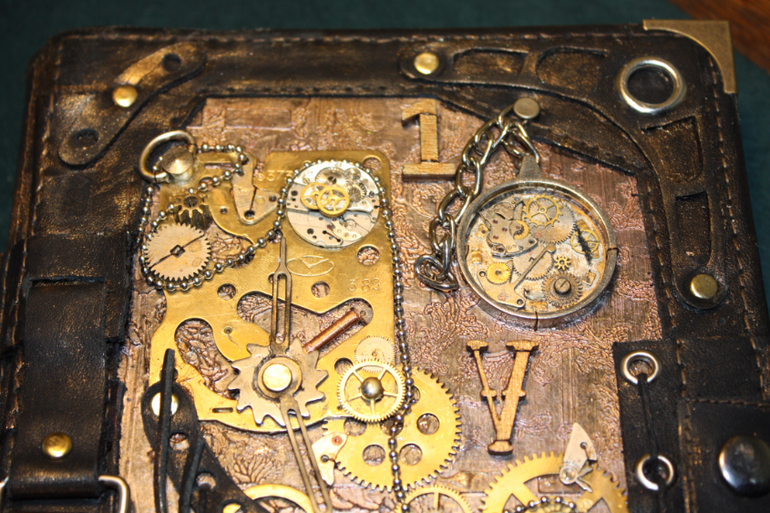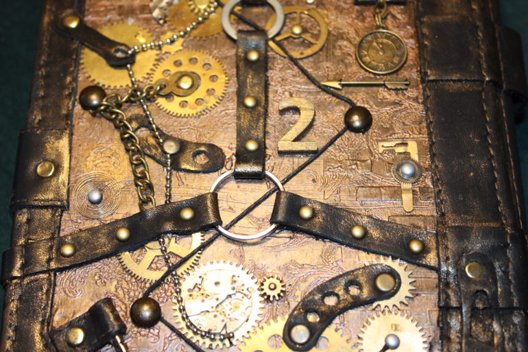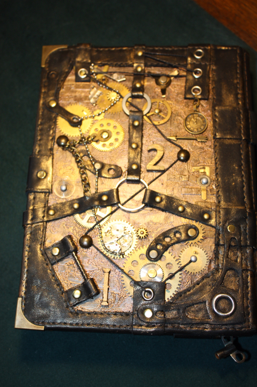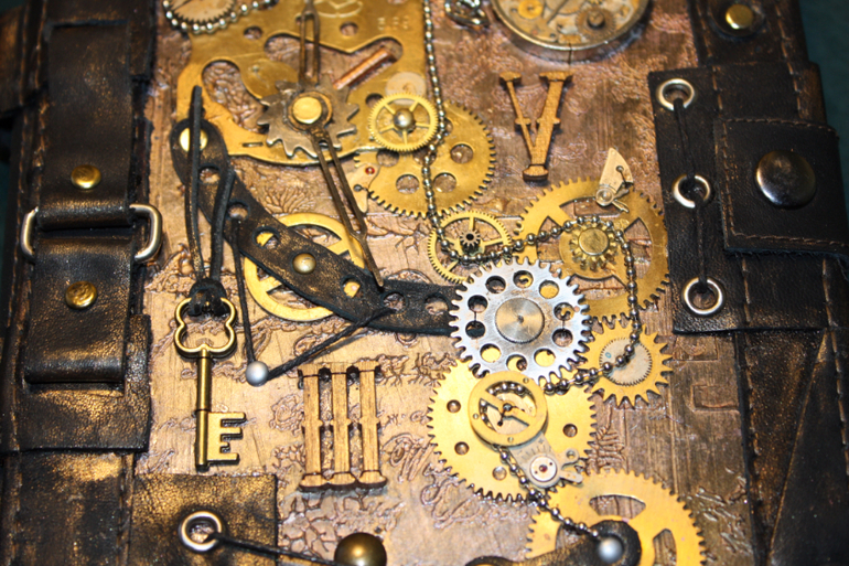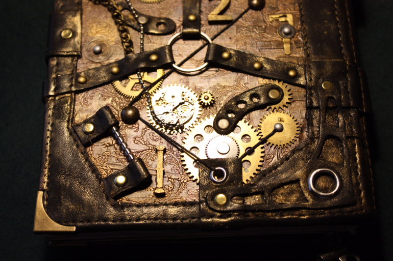 Я просила сделать его сложным, с разными наслоениями и тому подобное. И Марьяна шикарно его сделала. Обложка из кожи, шестеренки и т.д. от наст. часовых механизмов. Внутри листы в клеточку (как я и просила). В общем сказать, что я была в восторге это ничего не сказать. Неимоверно приятно держать его в руках. Так же внутри блокнота есть еще разделители.
