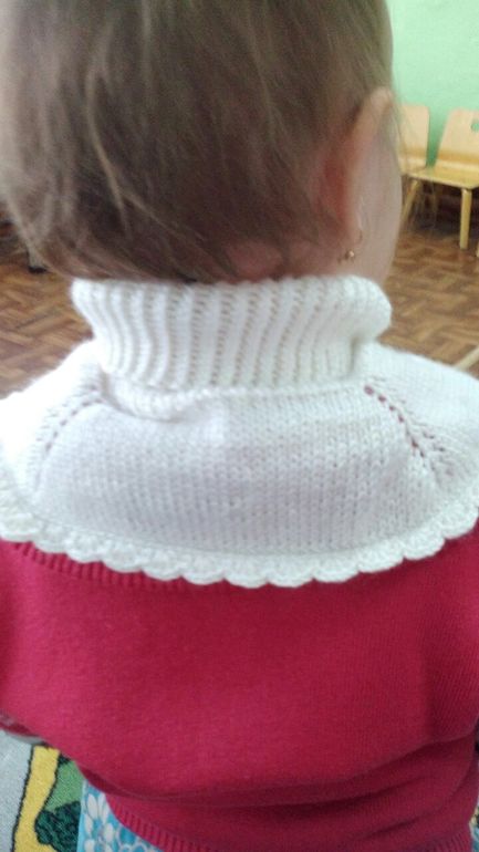 Извиняюсь за качество фото, вечером довязала, утром отдала. Фото сделано в дет. саду. ... не отходя от кассы.