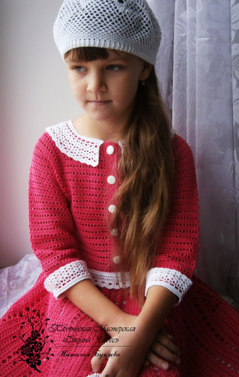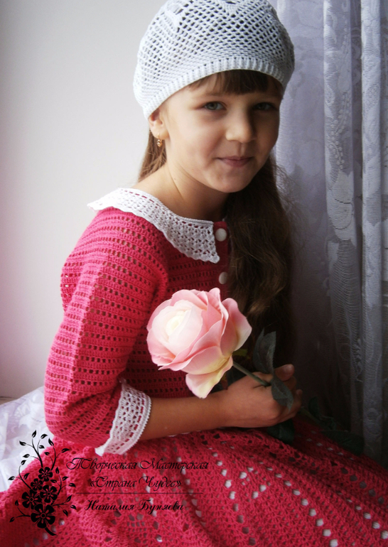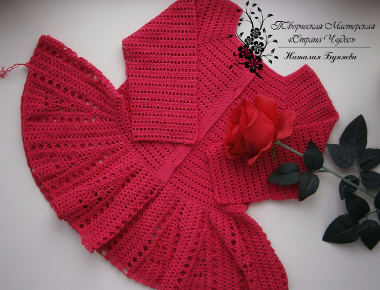 31января моей кнопке исполнится 6 лет и решила я её порадовать платьем своего изготовления,а т.к. размерчик не маленький уже решила вязать заранее.